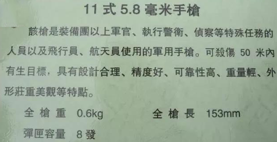 如果单单从这些用途来看,QSZ11手枪作为高级军官和和平时期飞行员配枪显然是合格的,虽然谈不上优秀,但也说不上差。