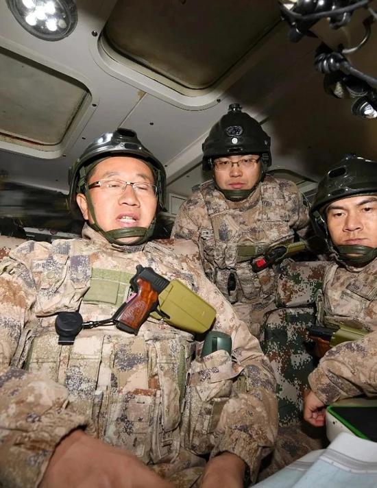 近日,小二在逛微博的时候,突然发现了近期官宣的一张指挥车内指挥训练的照片,图中的新型星空迷彩我们已经看了很多了,不过车内几名指战员胸前快拔枪套中的手枪引起了小二注意,黑色的枪身,配上了实木色握把贴片,看起来十分复古。