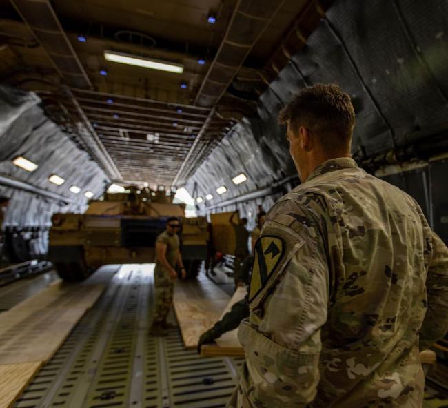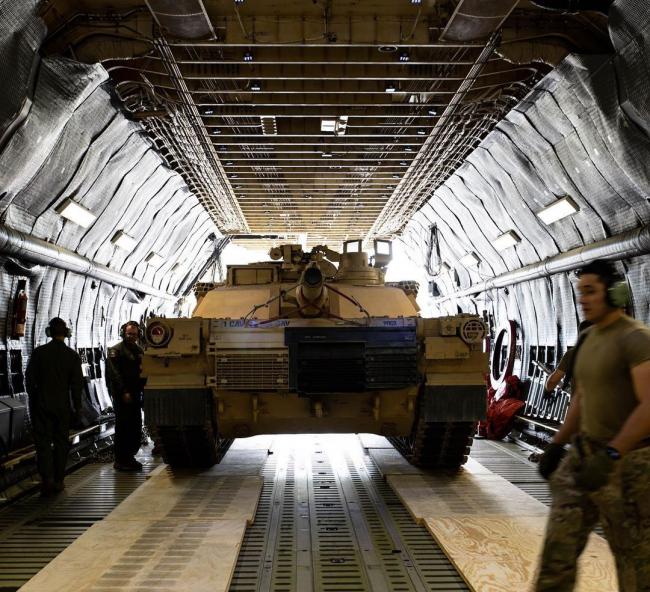 首次进行空运的美国陆军M1A2 SEPv3主战坦克,它基础重量就高达69吨,如果加上ARAT爆炸反应装甲套件的总重量达到了73.6吨。 如果再加上“战利品”主动防御系统,M1A2 SEPV3坦克的总重量要达到75.8吨,这对运输机来说是一个巨大挑战,理论上C17也可以运输,但是本图里使用的是C5“银河”运输机。