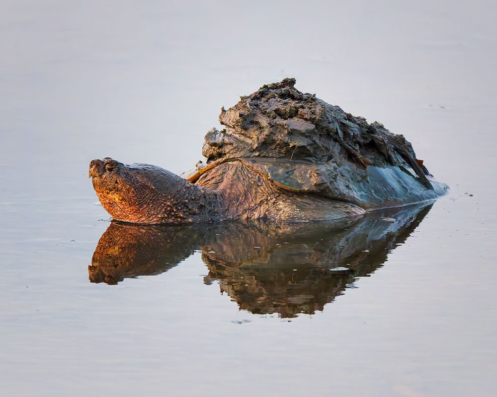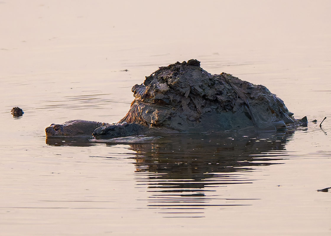 23 回程中离停车场不远处我看见水里有一个烂泥堆,仔细一看,wow是一只大鳄龟!估计它在烂泥地里钻了个洞在里面冬眠,这两天气温急剧上升,又下了大雨,它爬出来时背上的泥土粘在壳上掉不下来啦!
