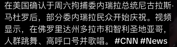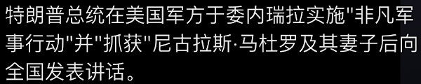 美利坚合众国成功地对委内瑞拉及其领导人尼古拉斯·马杜罗总统进行了大规模打击,他和他的妻子一起被俘并被空运出境。 这项行动是与美国执法一起进行的。 详情待关注。