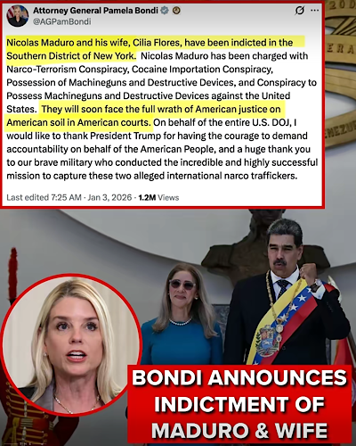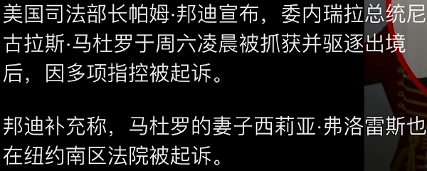 尼古拉斯·马杜罗和他的妻子西莉亚·弗洛雷斯在纽约南部地区被起诉。
