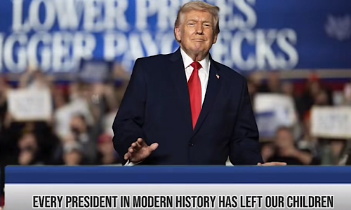 美国的黄金时代,我们的国家将会繁荣,在世界各地再次受到尊敬。我们将被每一个国家所羡慕,我们不会再让自己被人占便宜了。在特朗普政府执政每一天,我将把美国放在优先地位,就是这么简单。