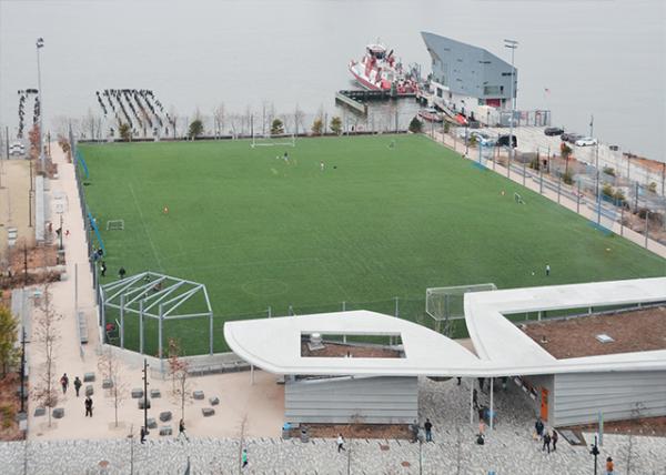 View towards Pier 40 @ Hudson River Park w/ the Background Landmark Bldgs on the West Side of Manhattan
