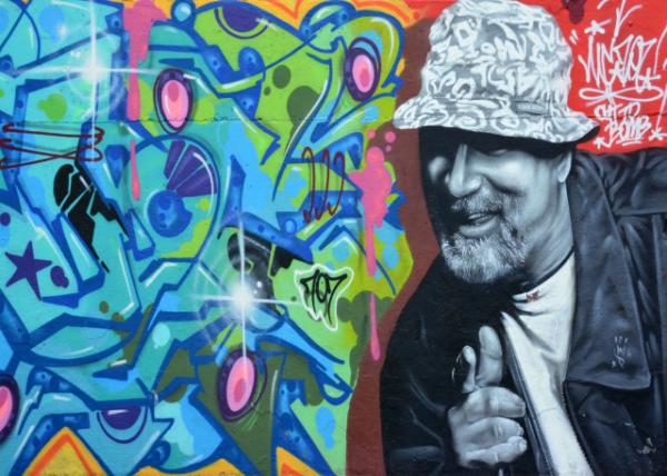 练习快乐的方式有很多,譬如用相机而非手机自我欣赏不乏其中一种。漫步在西班牙语哈莱姆区(El Barrio),我被马路对面坐在路边厢车后备箱拉呱的两位街坊招呼来聊手中尼康“日本光学”的前世今生,原来也是老古董的忠粉。我顺便打听前面拐弯要去的涂鸦名人堂,他俩嘻哈畅怀,让我即刻捕捉到壁画的表现力。
