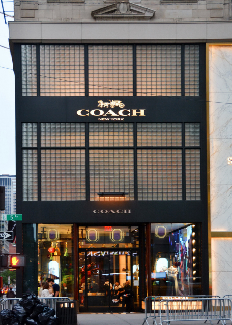 【注】九年前蔻驰“马具”在纽约第五大道开了全球第一家旗舰店,除了陈列自己的服装皮具,还设有定制艺术装置、工作室、字母组合站和办公桌。最令我欣赏的倒是它的修理部,如果你花上几百块美元甚至更高的价格购买了蔻驰产品,一般的磨损都可以拿到这里免费修复或更换新品。我家纽约仔在苹果店曾以旧换掉用了一年半载无故黑屏的手机,当然他本意只想更新零件;而同事在菲拉格慕“换狗”(Ferragamo)店也将穿过一年开线的$200皮鞋无偿换成了新款,原来只图缝合就成。在这些厂家看来,国际知名品牌当该万寿无疆,只要不是刻意损坏,质量绝对经得住时间考验,即所谓的“一分钱一分货”,价格昂贵的商品质量就应得到保障。