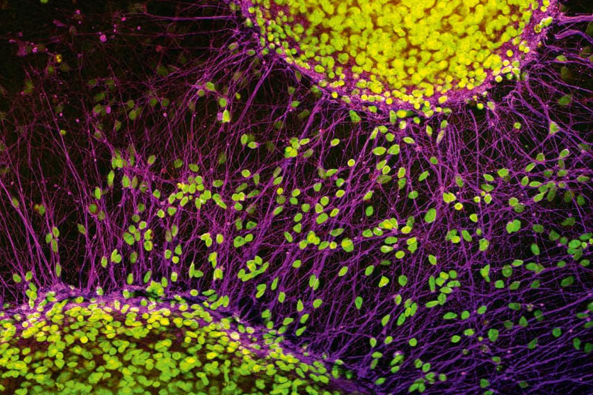 诱导多能干细胞分化而来的神经元的荧光显微照片 - 图片来源:科学图片库