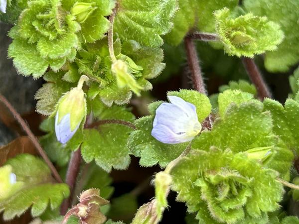 宝盖花开了,小小的紫红,如蜡烛,点燃在大石块边上,不注意,很容易错过。它旁边还开了几朵蓝白色小花,状如小碗,青花瓷。上周六就含苞的枫树,刚伸出几根花丝摇拽,色泽依旧暗红。倒是小溪岸边的芥菜,长得好大,有的连成了片,绿意盎然,如流水,生生不息。