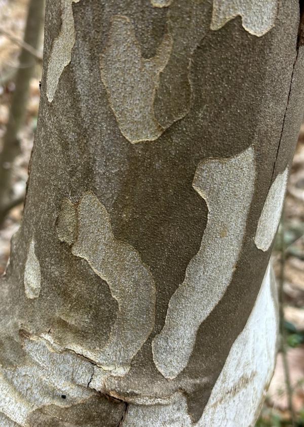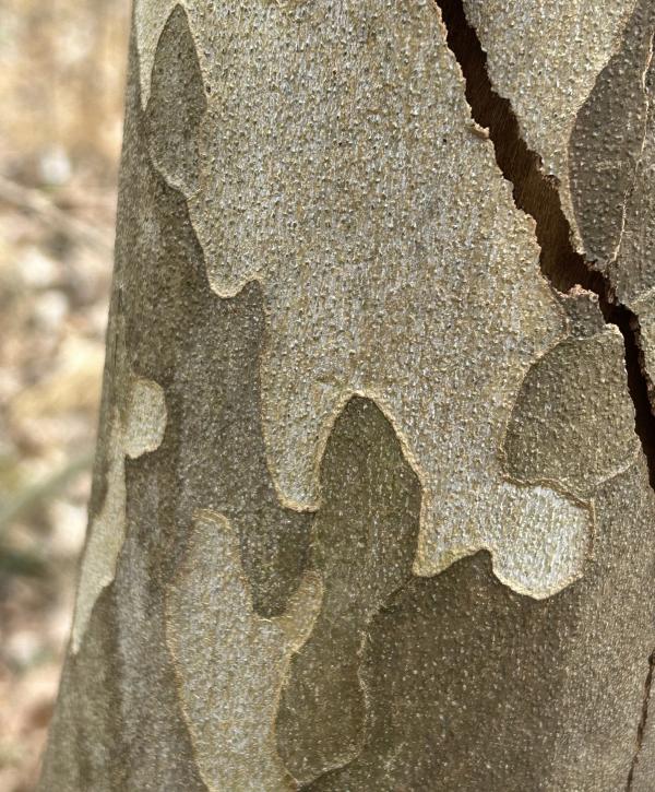 悬铃木的疤痕再次吸引了我,一块块,如猫,似狗,小兔子,或其他小动物,煞是可爱。有一棵悬空,离地一两尺,身高几米,疤痕绝妙。我怎么也找不到断根在哪,它就那么悬在那里,底部伸出一大块,如贵重的马靴子。
