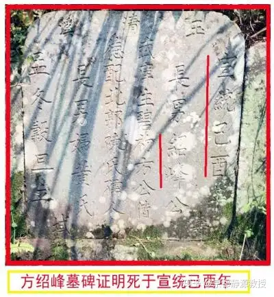 这个王芗斋和方绍峰比武时间只能出现在1910年前后。因为真正的方绍峰就在这一年因病意外逝世。证据见《方绍峰墓志铭碑》铭文记载,方绍峰卒于1910年(宣统己酉年),最晚也死于1912年-1913年间的瘟疫。见如下: