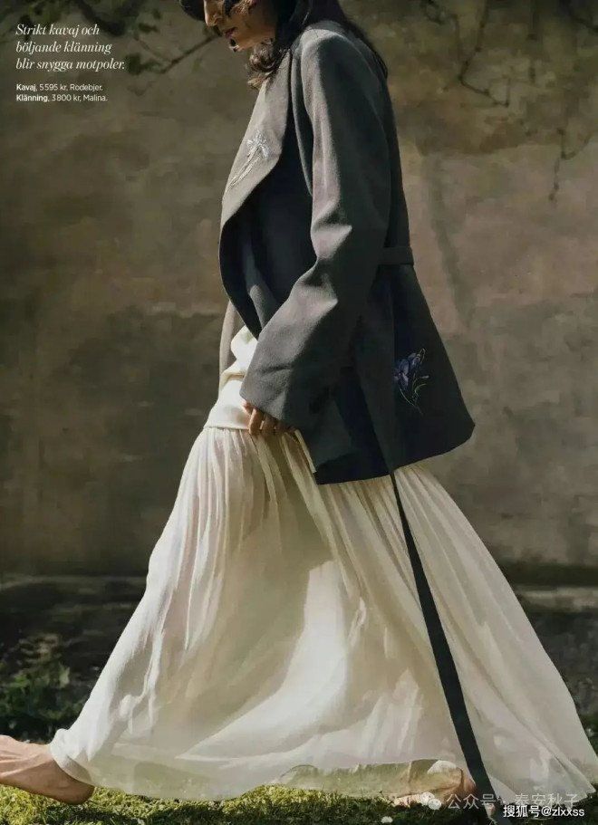 比如优雅得体的深灰色西装,搭配轻盈飘逸的白色大裙子,不但有种老钱风的贵气感,又略带些清冷疏离,这样的搭配不仅经典,而且几乎不会过时。