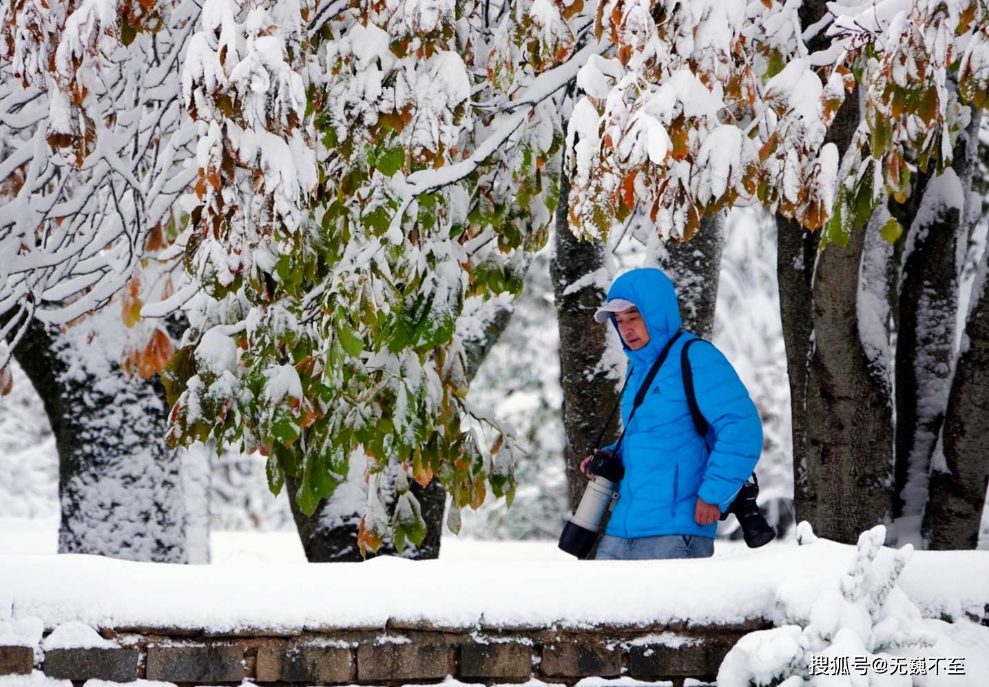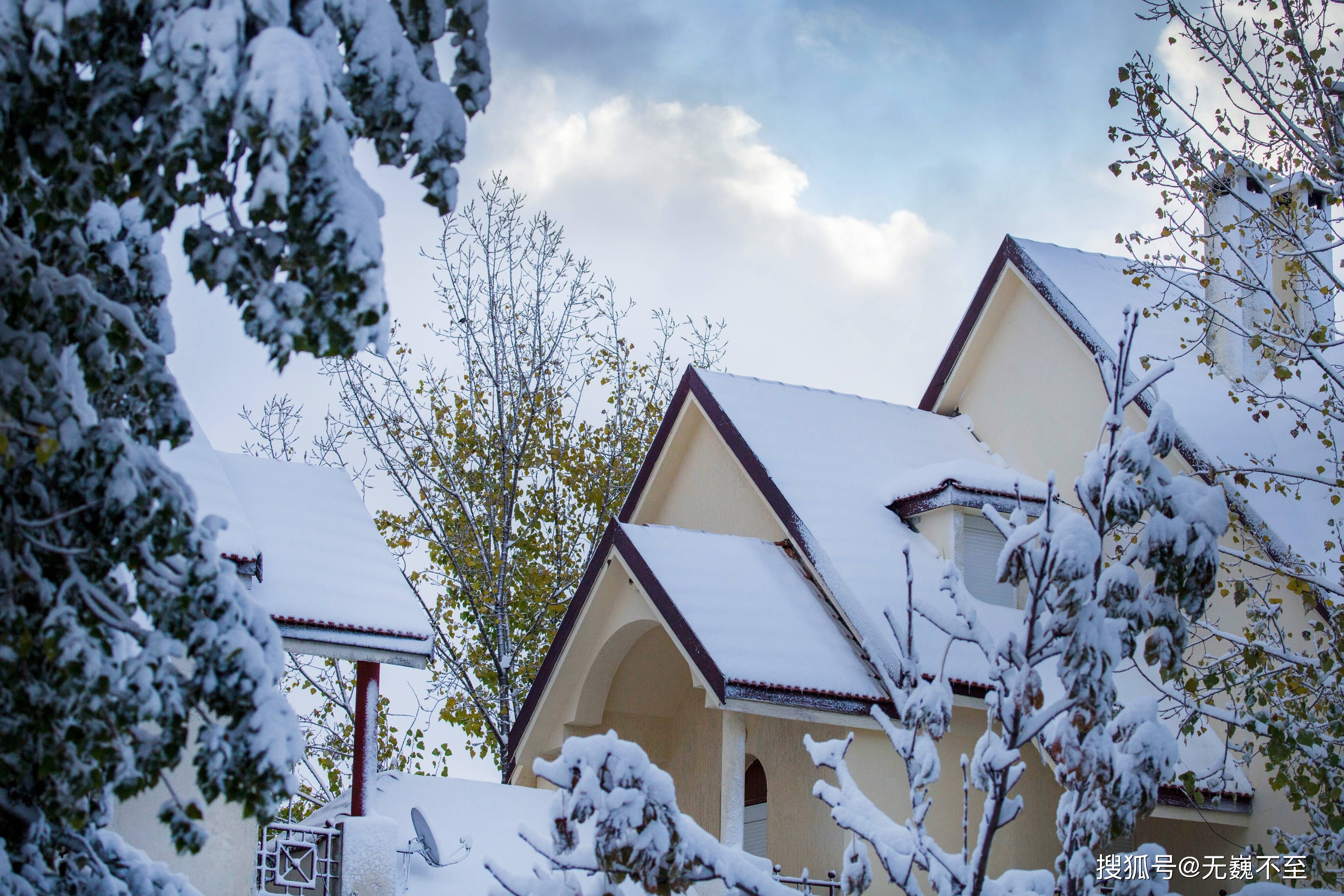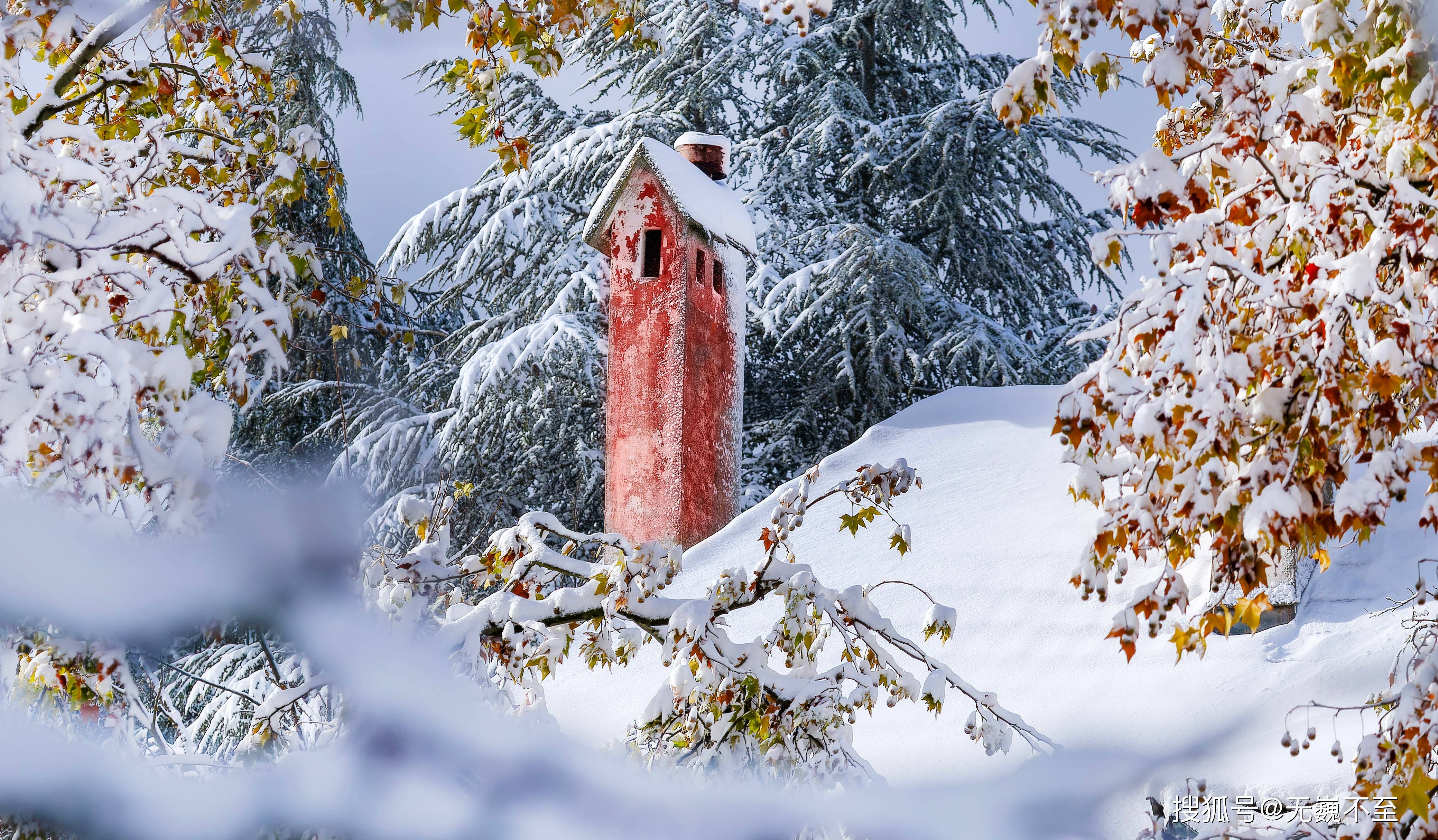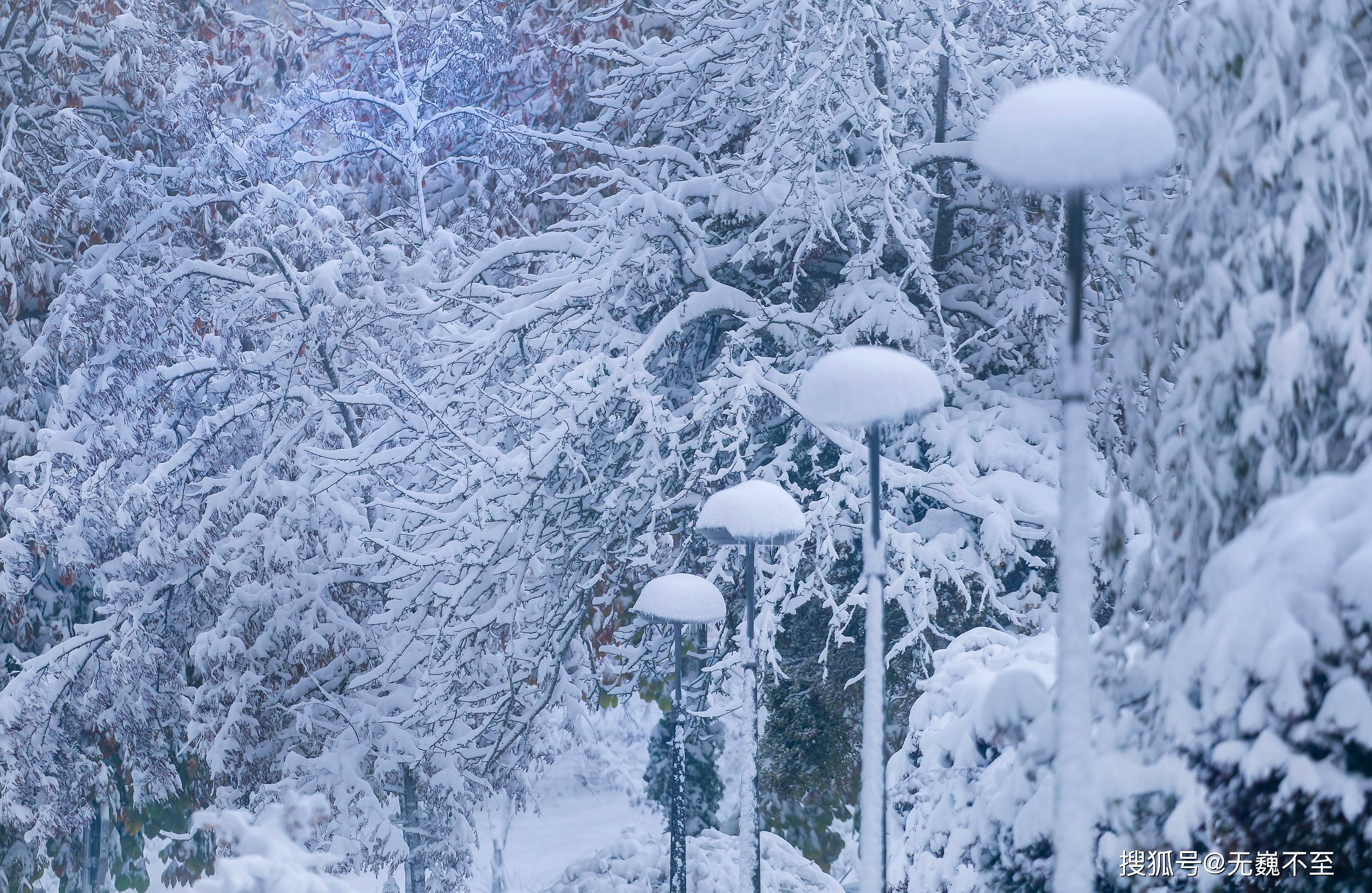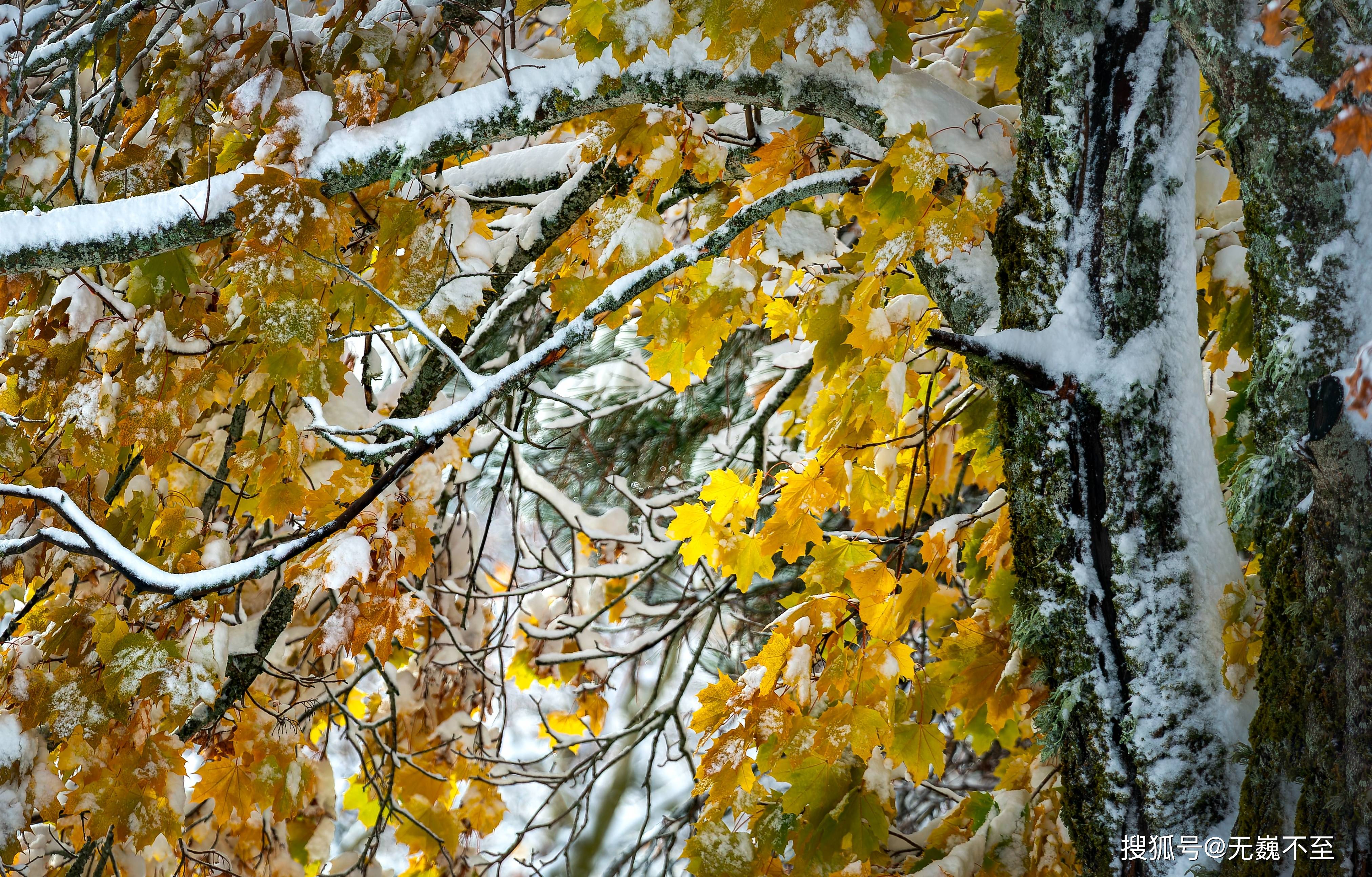 浓密的法国梧桐叶子尚在青绿橙黄之间的秋意中摇曳,一夜之间它的秋色便被银装素裹的冬雪掩藏。