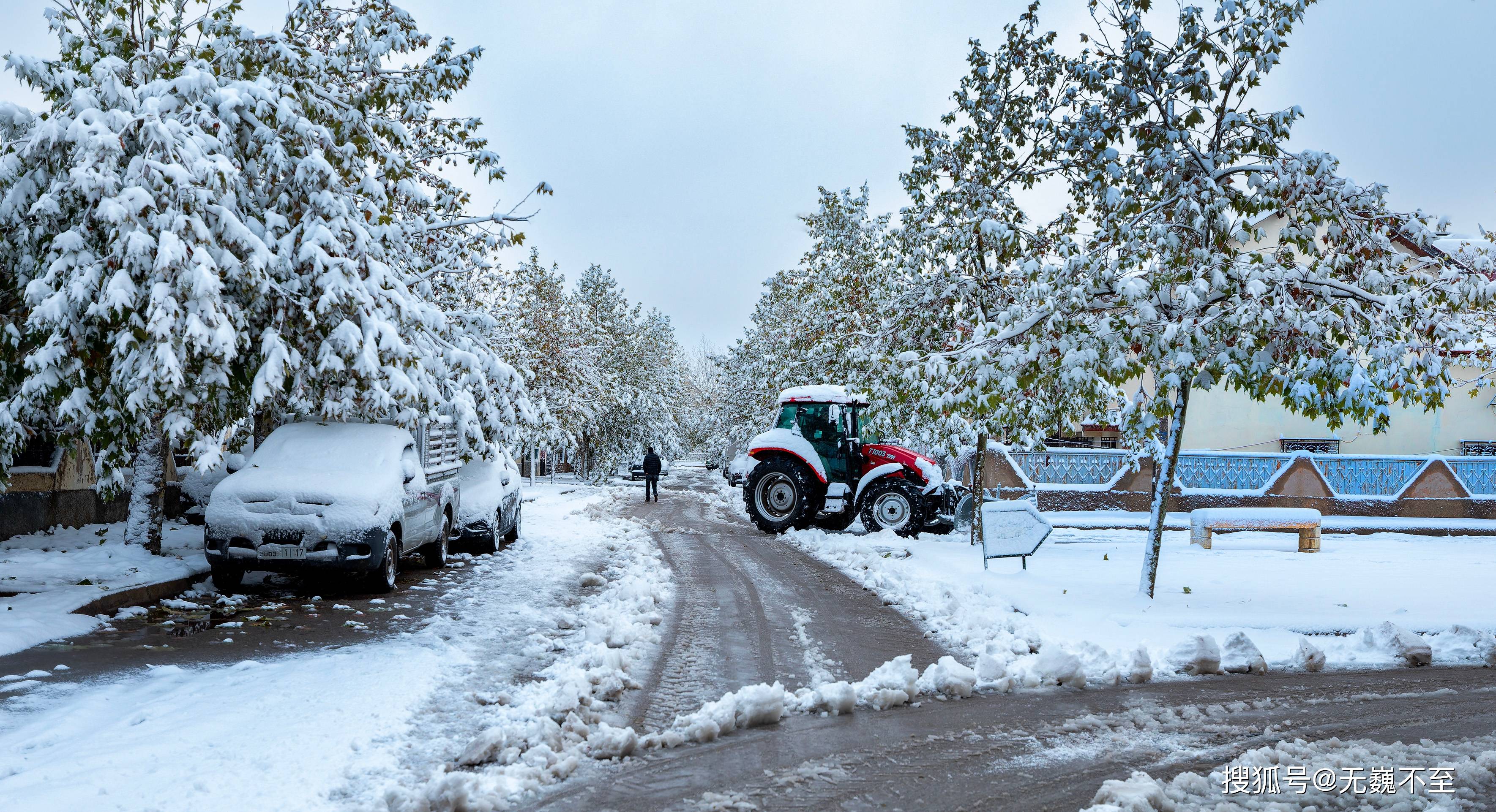 仗着自己良好的方向感,定位了一下酒店位置后,果断蹿上大街,几辆辛勤的铲雪车已经开始在扮演大侠西门吹雪的角色了,为了保障人们出行和工作生活,铲雪车驾驶员可以说是伊芙兰起得最早、最辛苦的人啦!