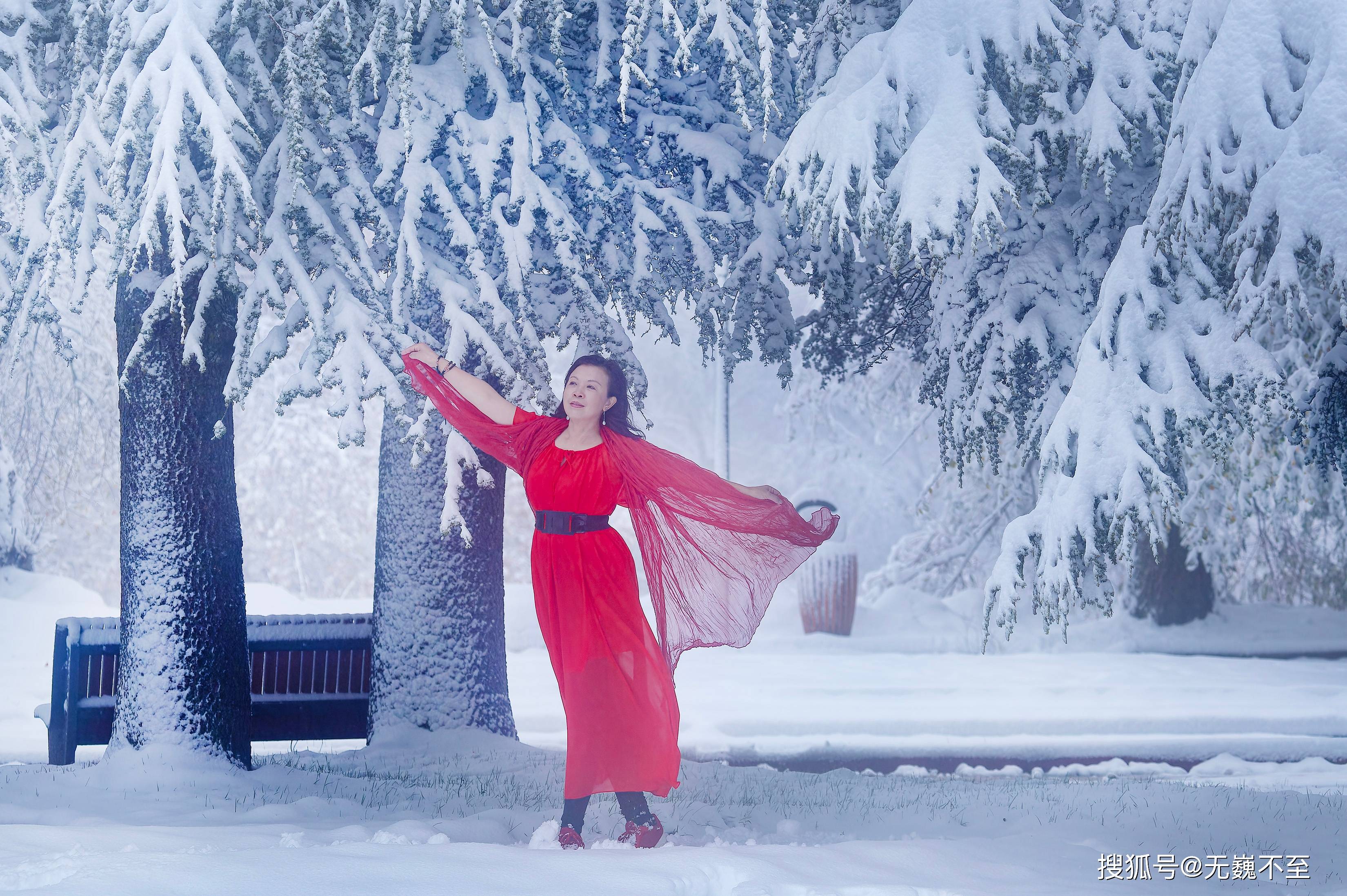 这也鼓舞着更多的人们冒着天寒地冻也要在雪地里展示风情和魅力,婀娜多姿的红裙美女沉醉其间,是美丽动人还是楚楚冻人呢?你不问,她不说!她不说,你也知!哈哈!天知、地知、她知、你知、我知、人人皆知!