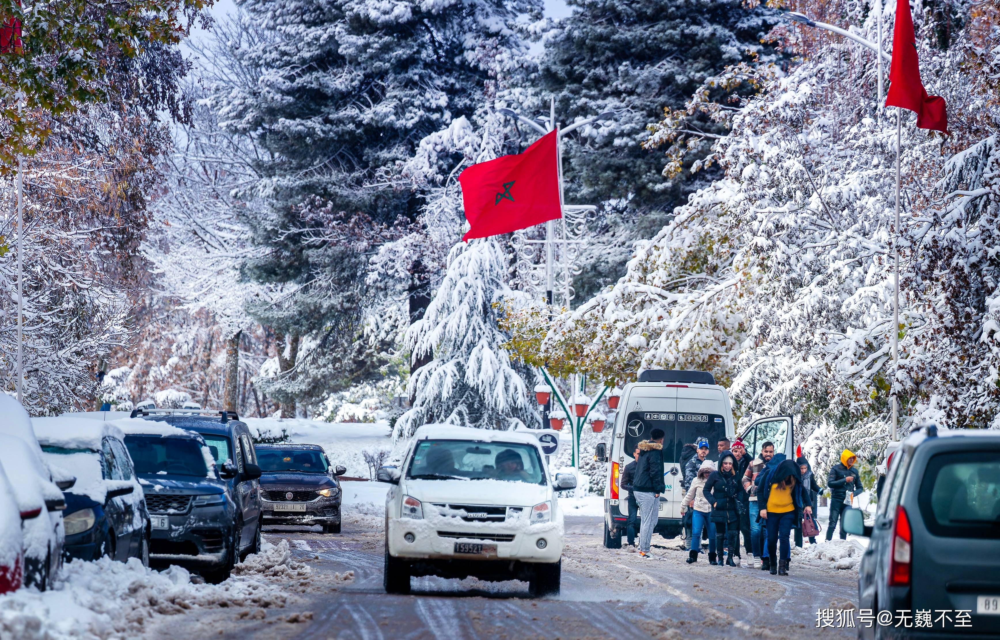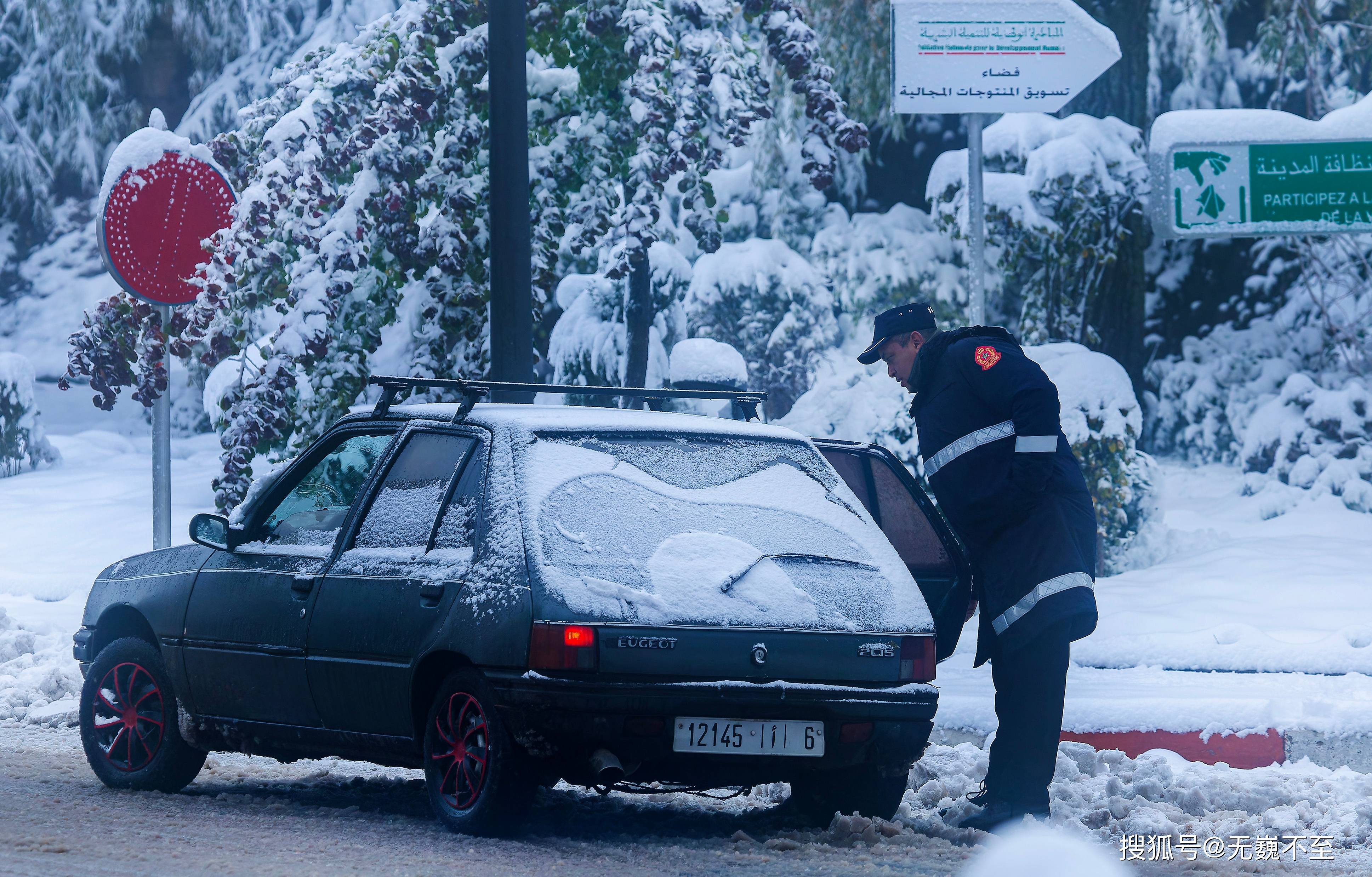 沿着街道往北,敬业的伊芙兰警察已开始在十字路口执勤,通往阿特拉斯山南部的道路已经关闭,一些货车不愿绕道近千公里,选择了在伊芙兰停车休息等候几天,待风雪过后再翻越阿特拉斯山。