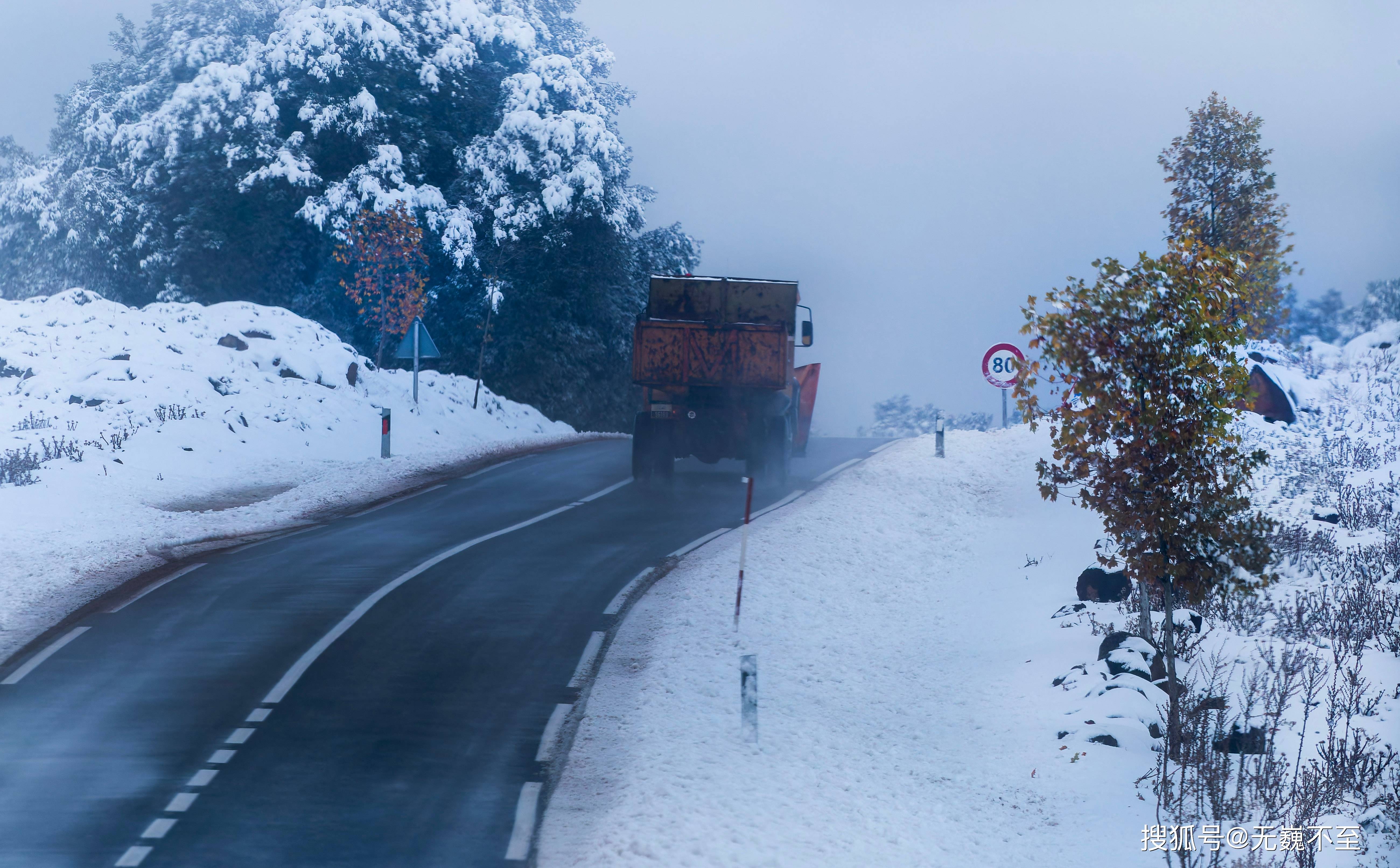 交警不断提醒外地车牌的车辆,叮嘱相关安全注意事项。其它过往车辆则降低车速,小心翼翼地驶过路面,以免带有泥浆的雪水溅到路旁行人的身上。