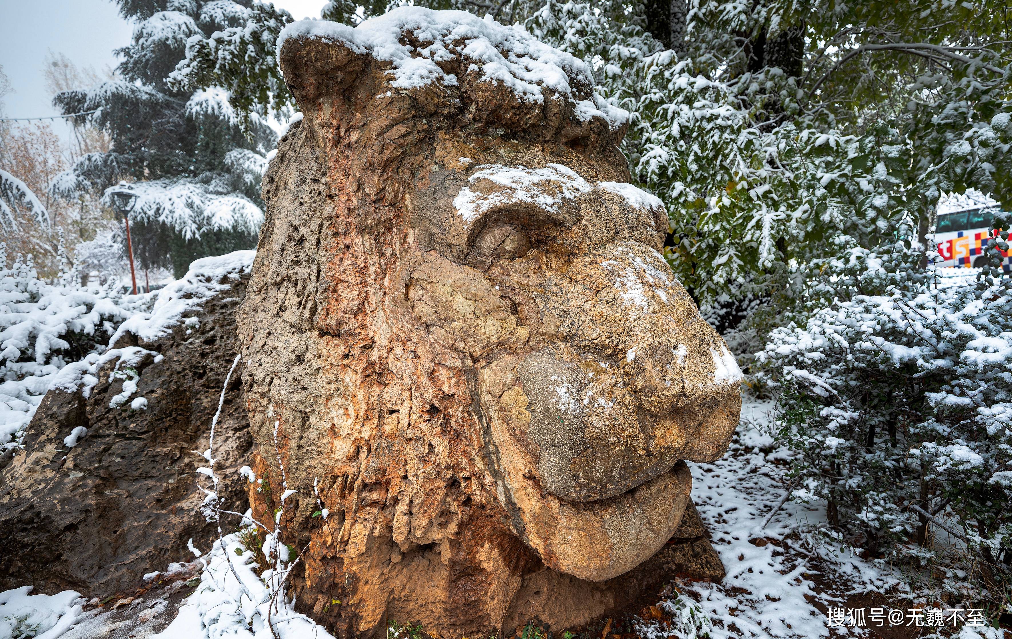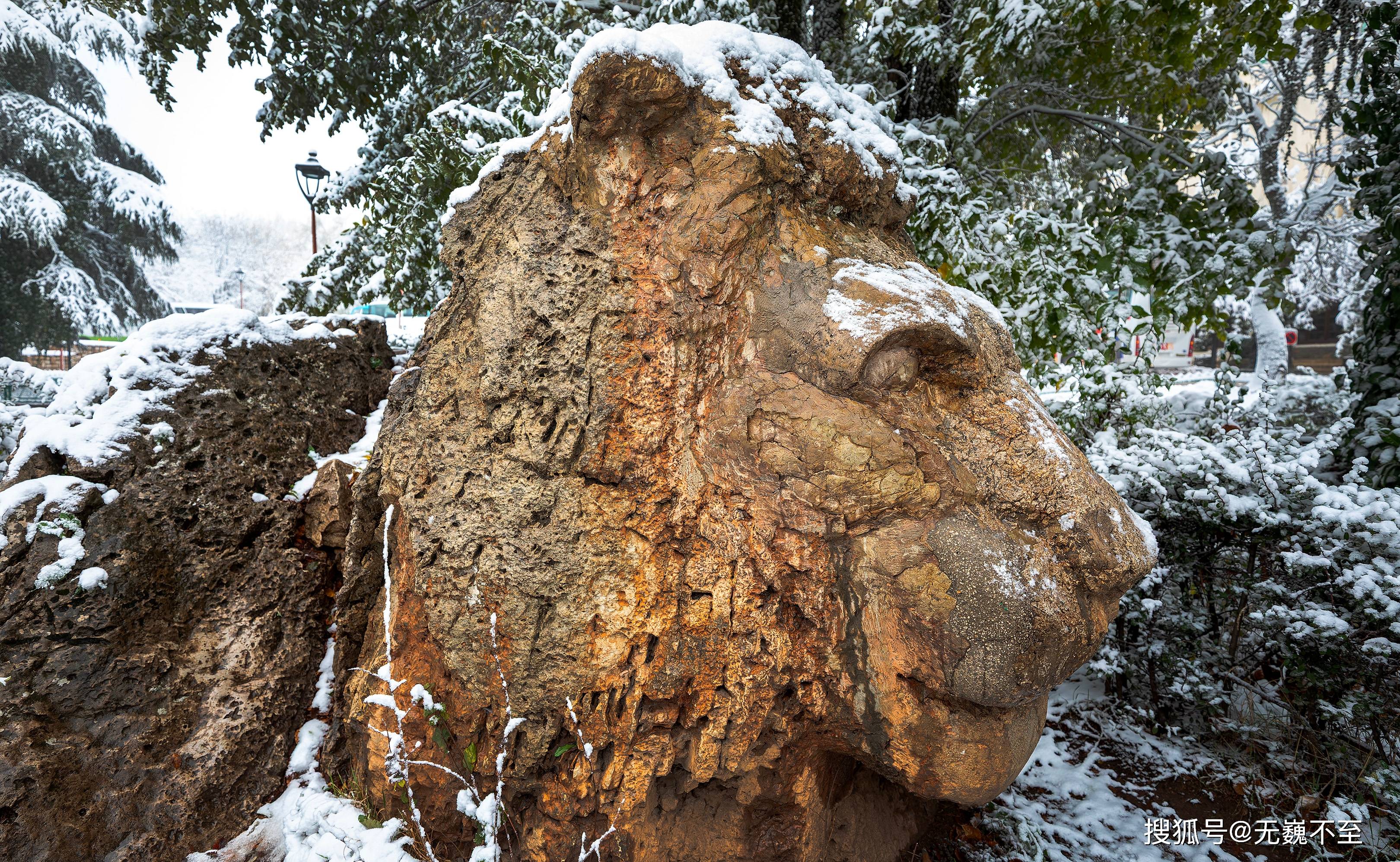 在街心公园的一侧,因处于浓荫之下,一大块橙黄略带些粉红的石头还未被积雪覆盖,过往人群都对着它指指点点,走近细看,方看出端倪:原来这是一只石雕狮子,轩昂有度,气质忧郁。这便是被视作伊芙兰象征的石狮子。据介绍,这只花岗岩石狮系二战时被盟军关押在此的一名德军战俘所雕,距今已有近80年历史了。