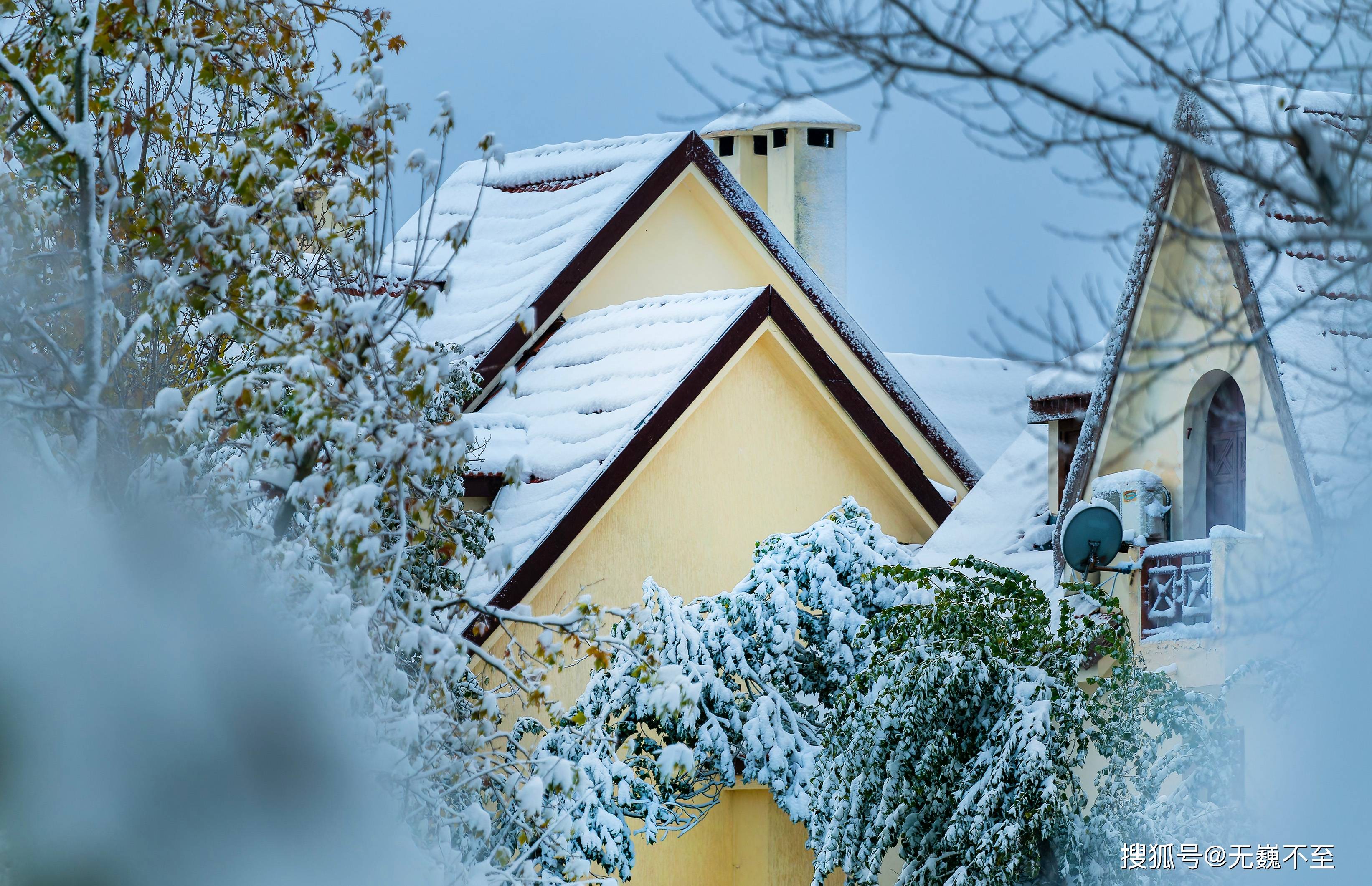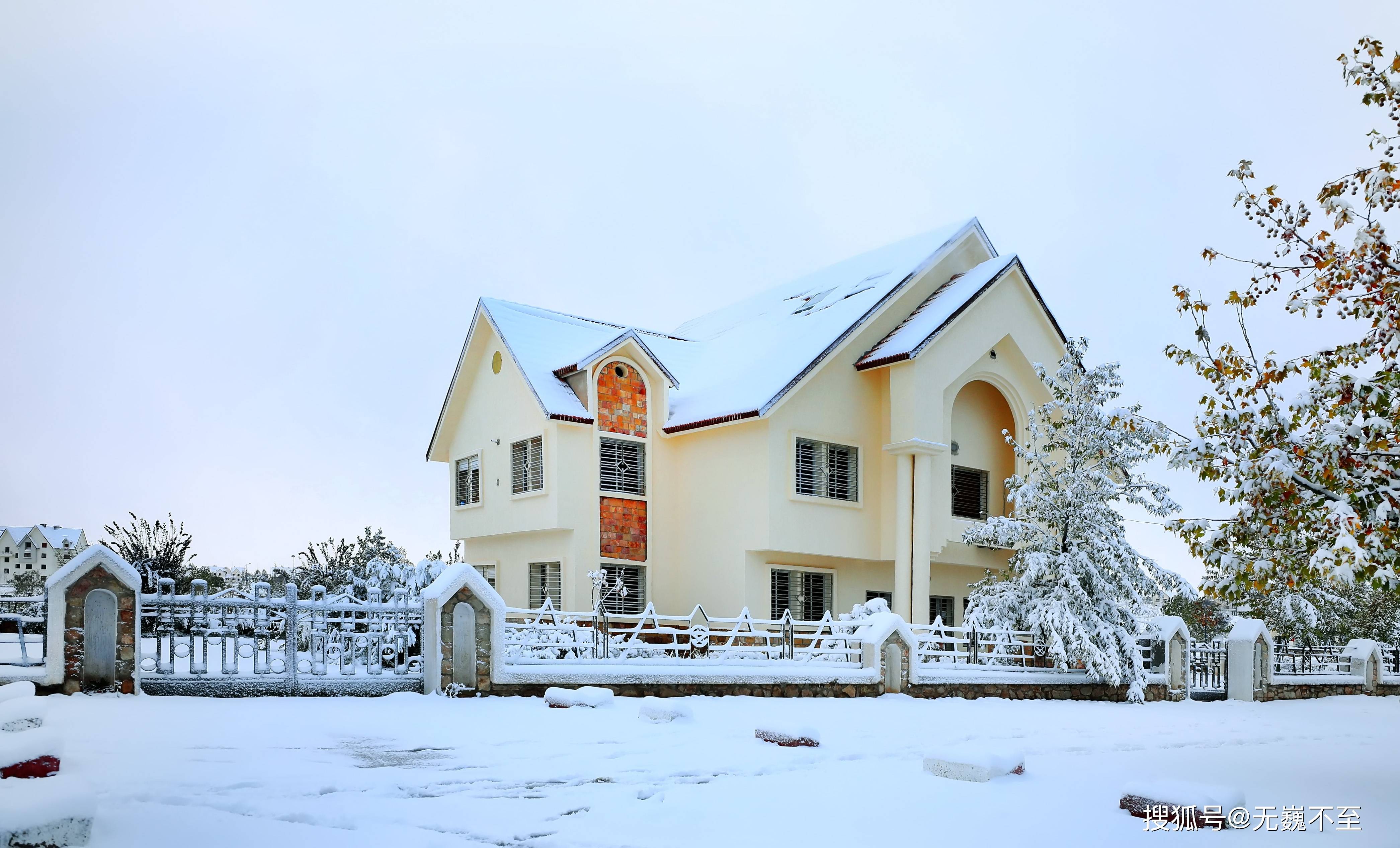 雪中建筑那明黄色墙垣与雪花融为一体,使得那些彩色的门窗格外醒目——钴蓝色如冻结的地中海,翠绿色似初春的新芽,橙红色像被封存的阳光。建筑立面上的雕花与装饰在雪的衬托下更加精致,每一个卷草纹、每一颗几何星芒都镶上了银边。