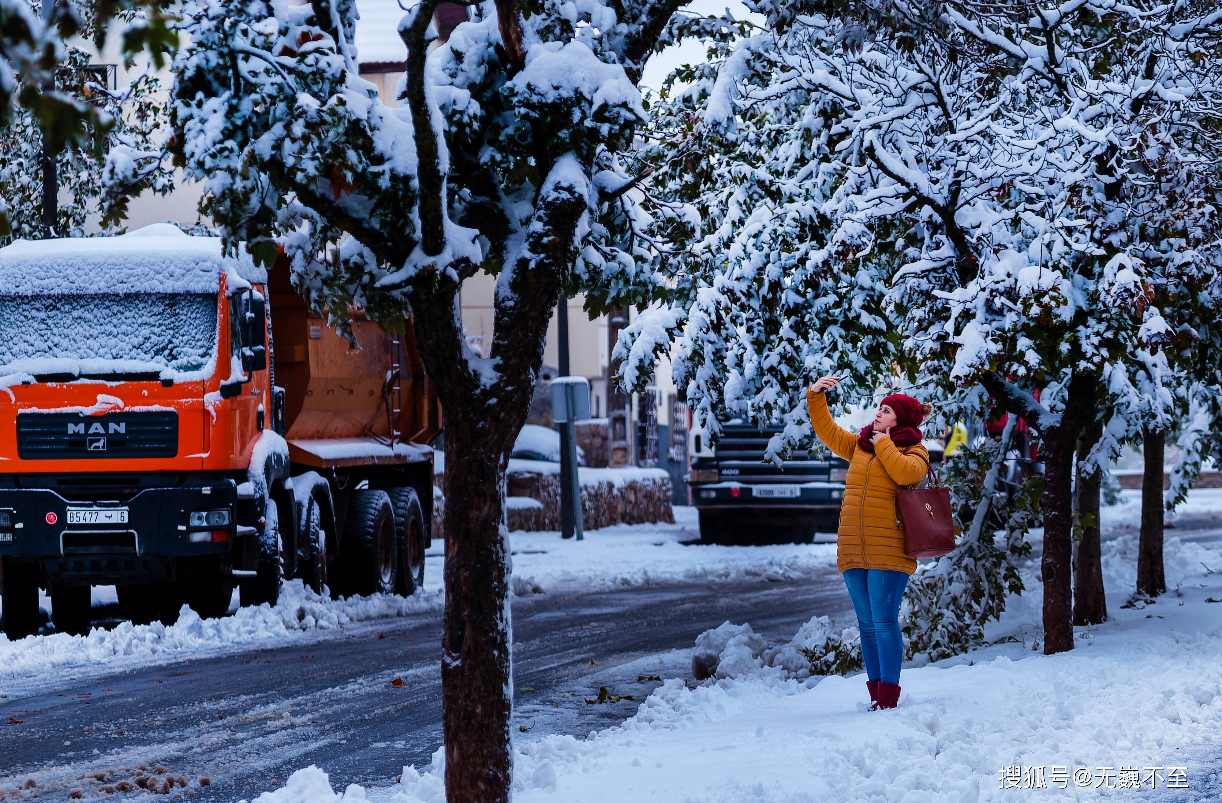 伊芙兰地处阿特拉斯山北麓,海拔1650米,植被丰富,雨量充沛,一夜风雪便将满城的树木塑造成一片冰清玉洁的玉树琼花。