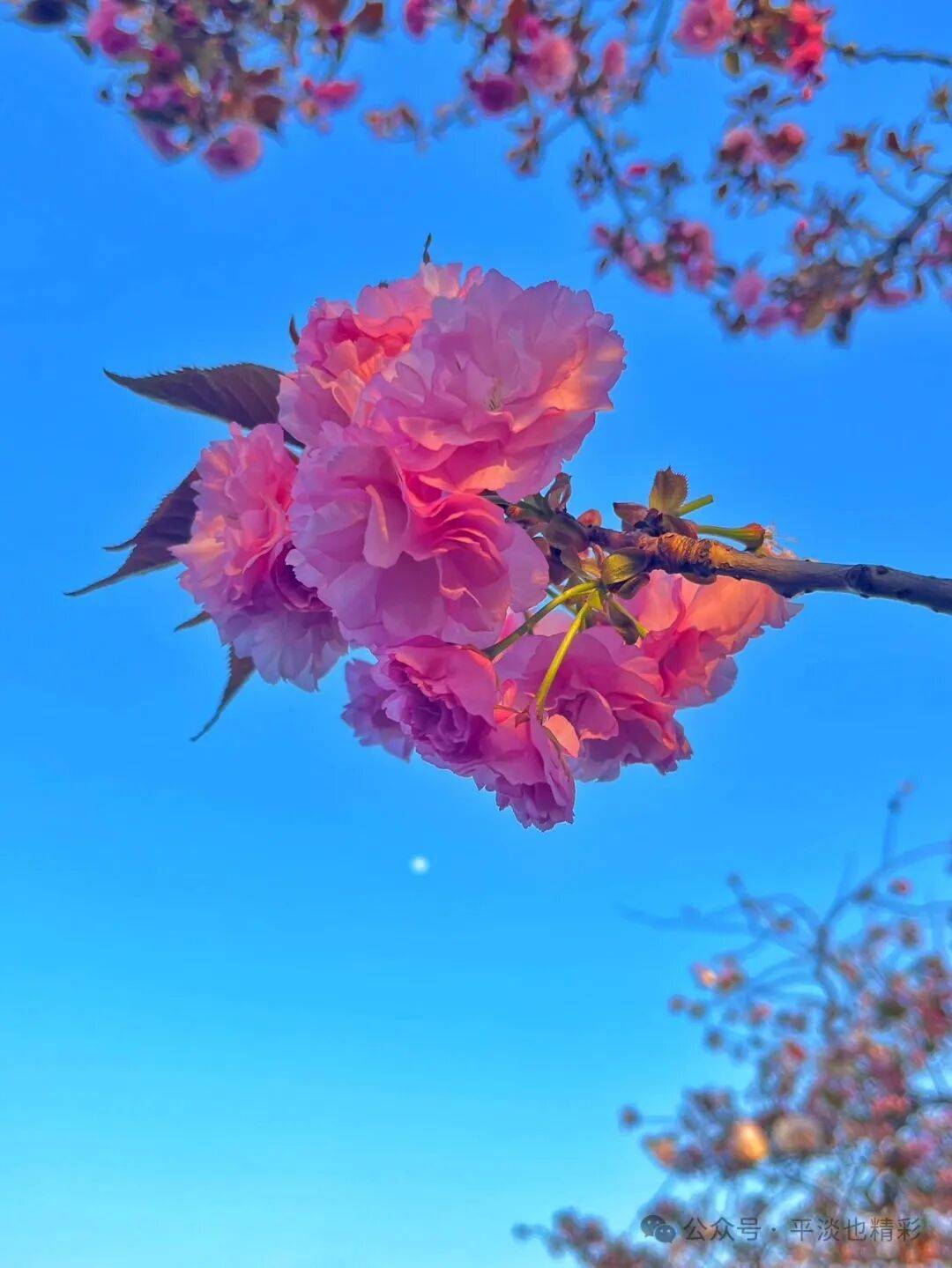 此时节的公园里,还是樱花最靓眼,有的粉白素雅,有的粉红娇艳;一朵朵、一簇簇、一树树,都会给人不一样的惊艳。蓝天白云樱花树,处处风景皆画卷。