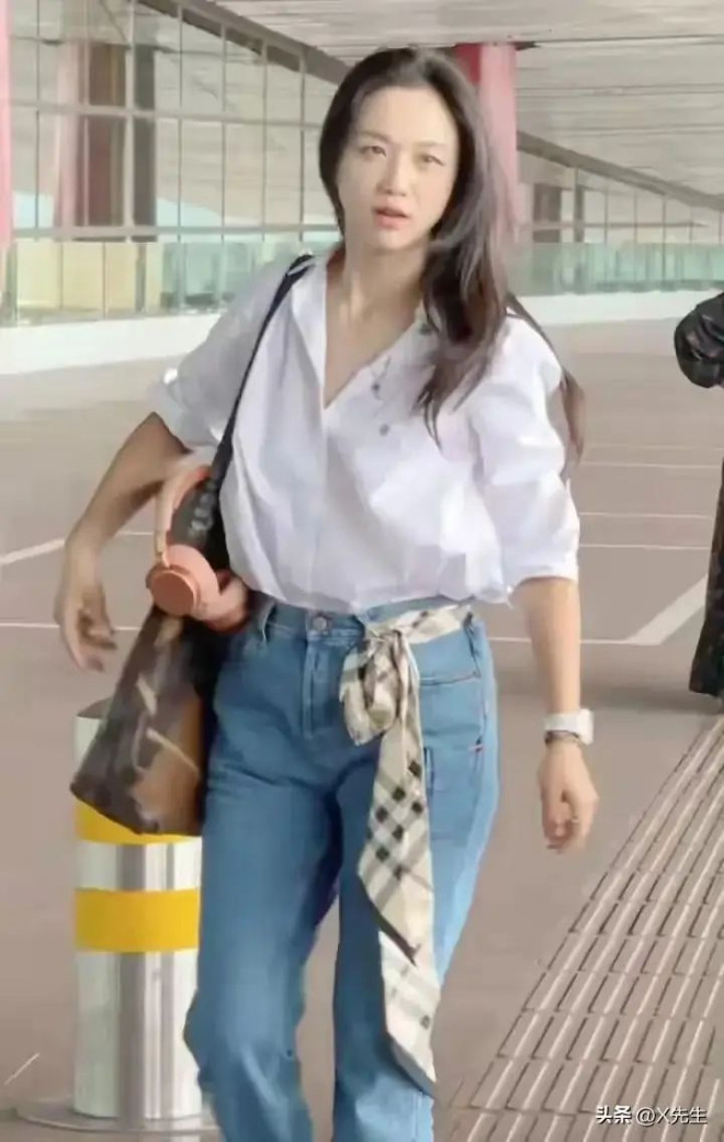 45岁汤唯机场外被偶遇:她个子好矮 身材五五分
