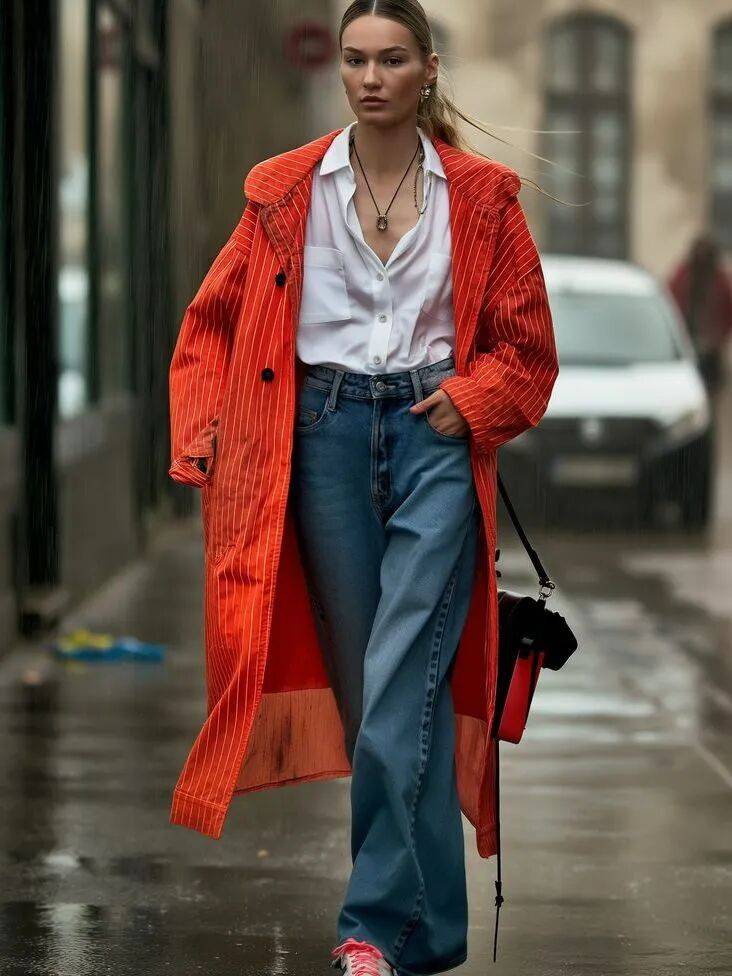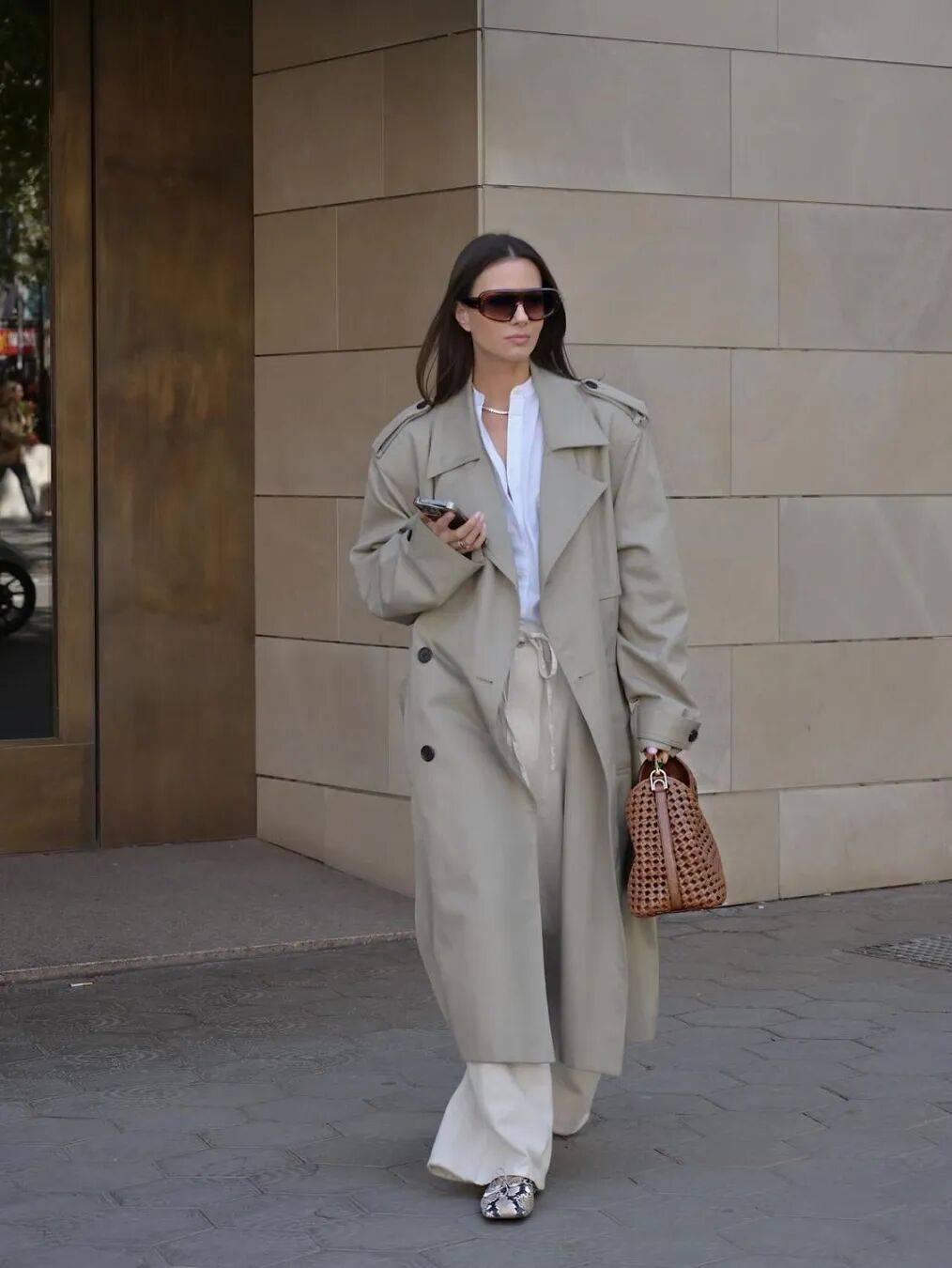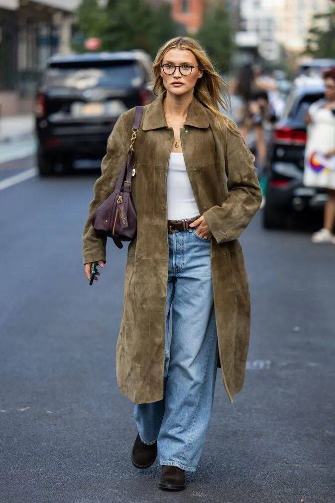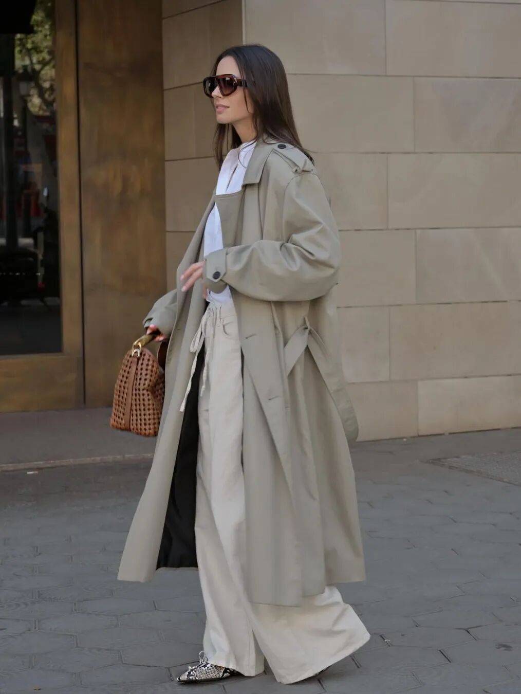 反之,轻薄风衣或针织长外套则可搭配有挺度的下装,如牛仔裤或工装裤,让整体更有支撑。