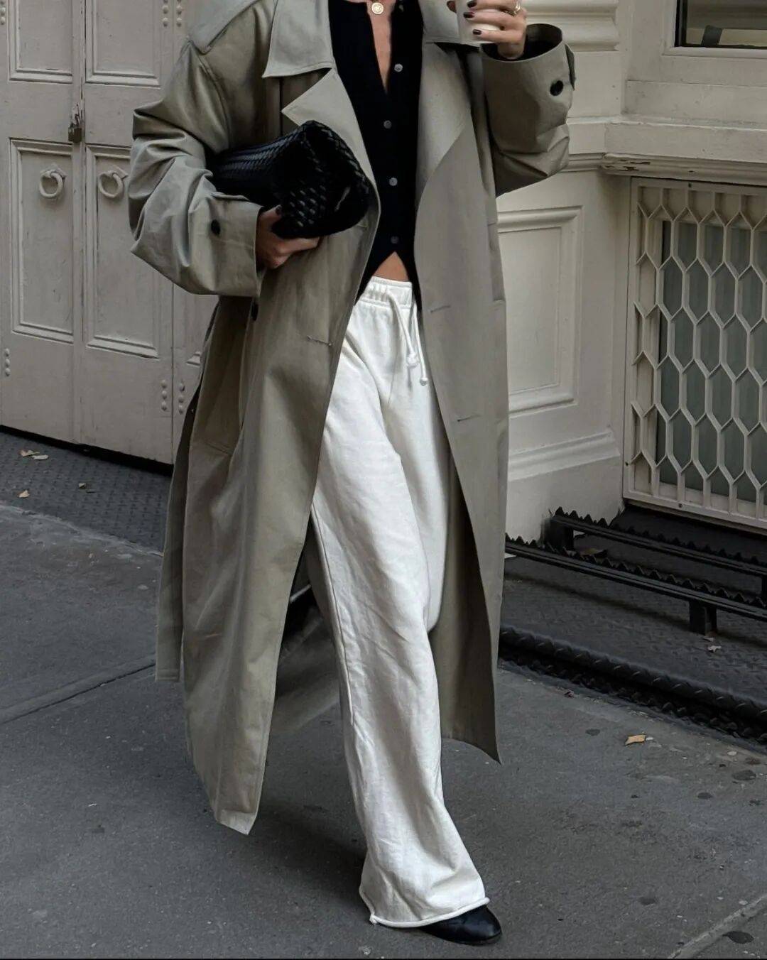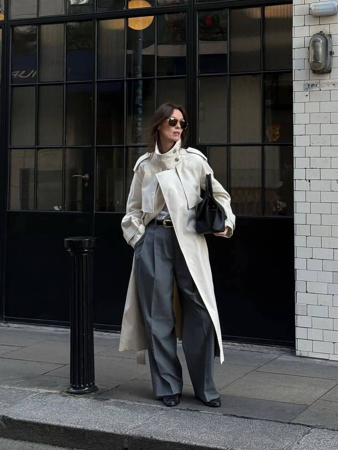 整体视觉应当“向下延展”,而非“上下分割”。这正是长外套与长裤搭配的核心审美逻辑。