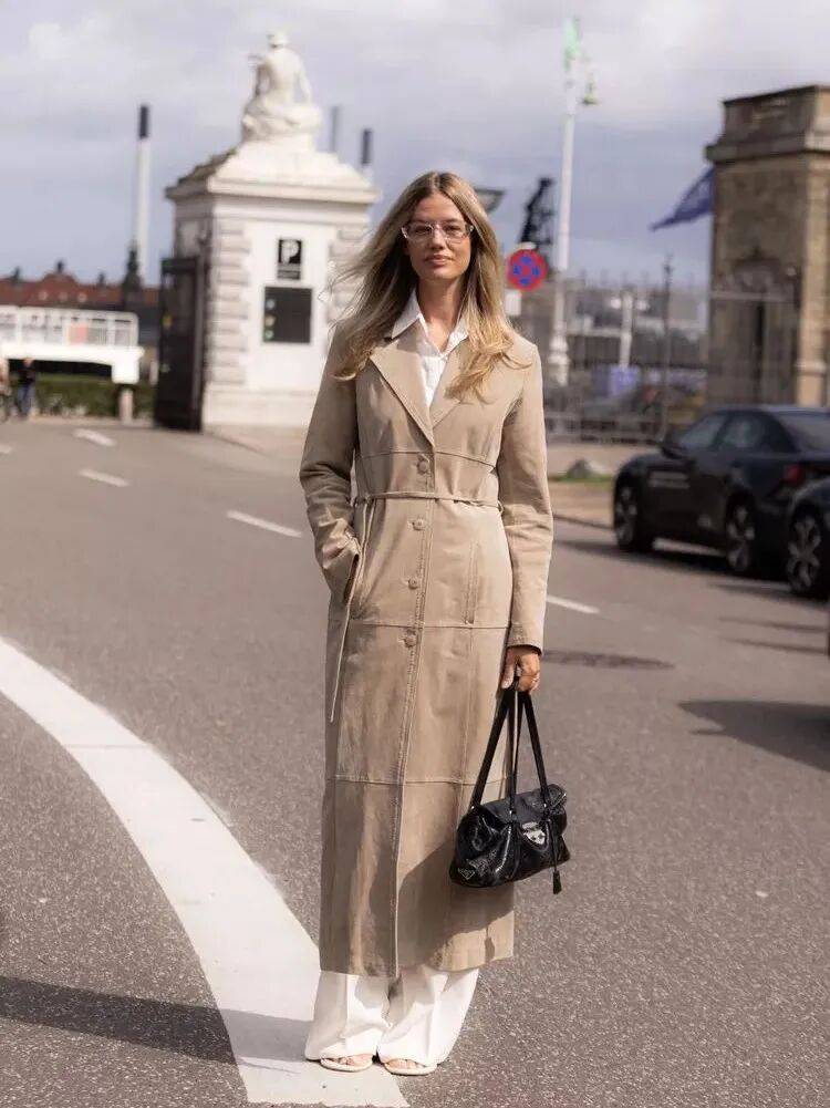 高个子可以尝试更接近脚踝的款式,比如呢料大衣或风衣,走动时衣摆轻轻扫过鞋面,会显得气势更足。