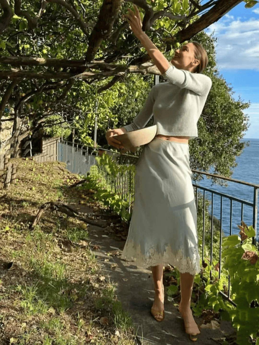 今年缎面拼蕾丝半裙迅速成为时髦精们争相追捧的热门单品,而它与毛衣的搭配,更是碰撞出了令人惊艳的时尚火花。