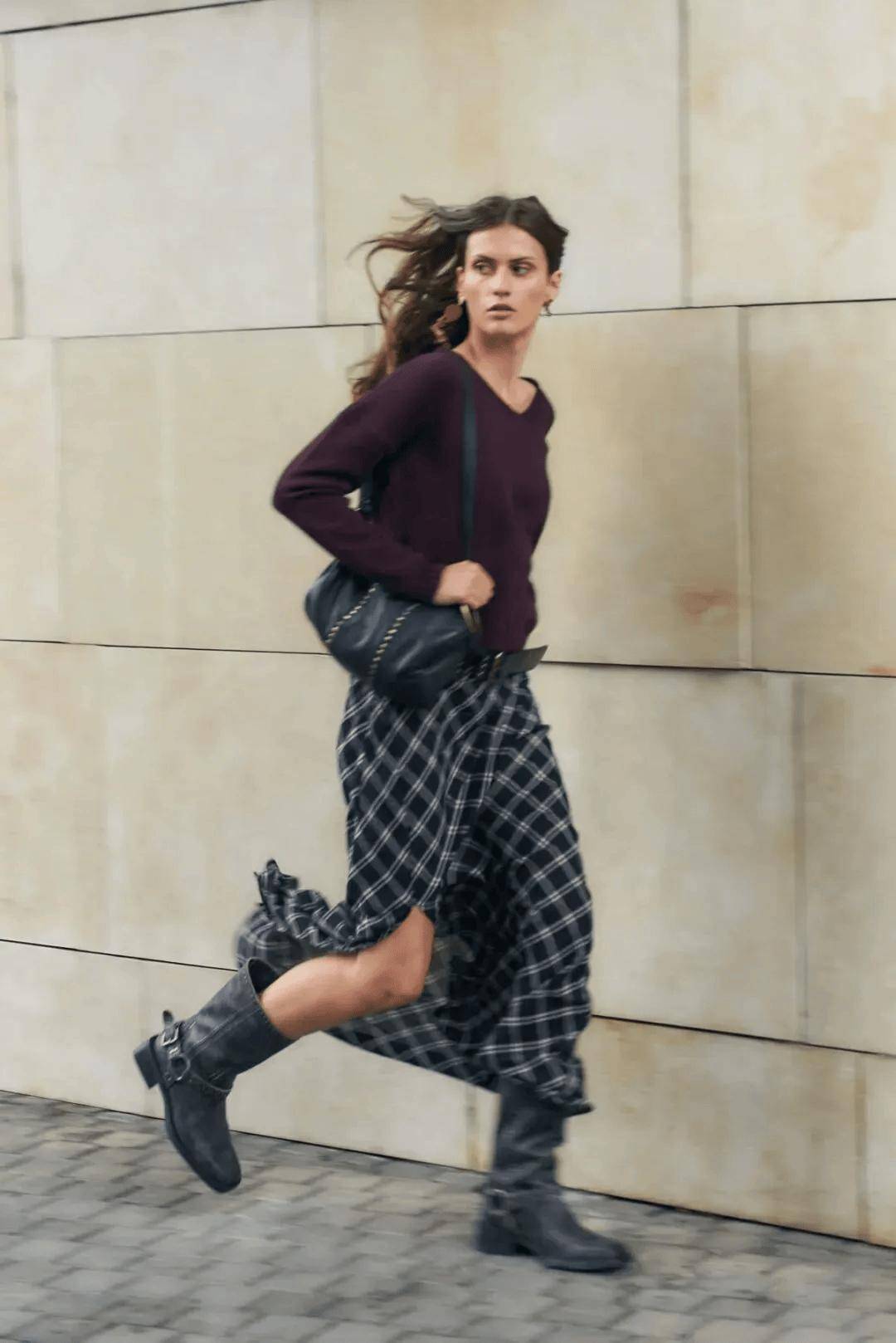 2️⃣ 配色升级:尝试“同色系渐变”(如焦糖毛衣+棕调格纹裙),或小面积亮色点缀(包袋/鞋子)