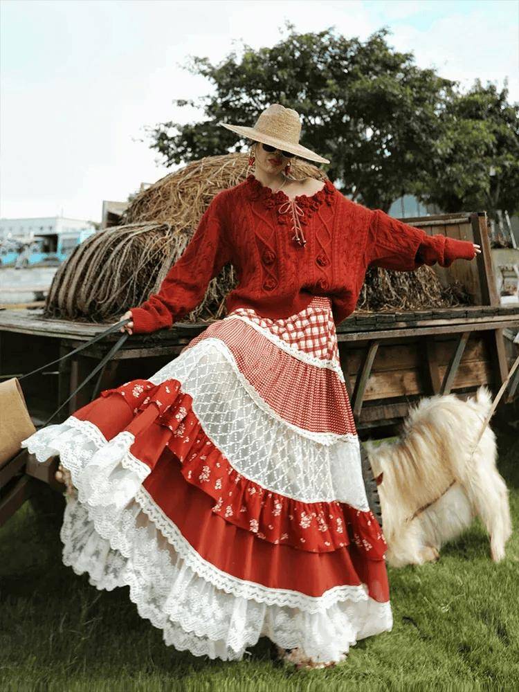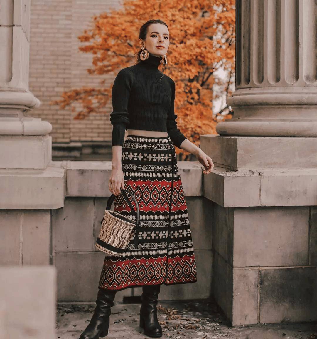 毛衣 + 花样半裙|给秋冬加一抹“彩色滤镜”。