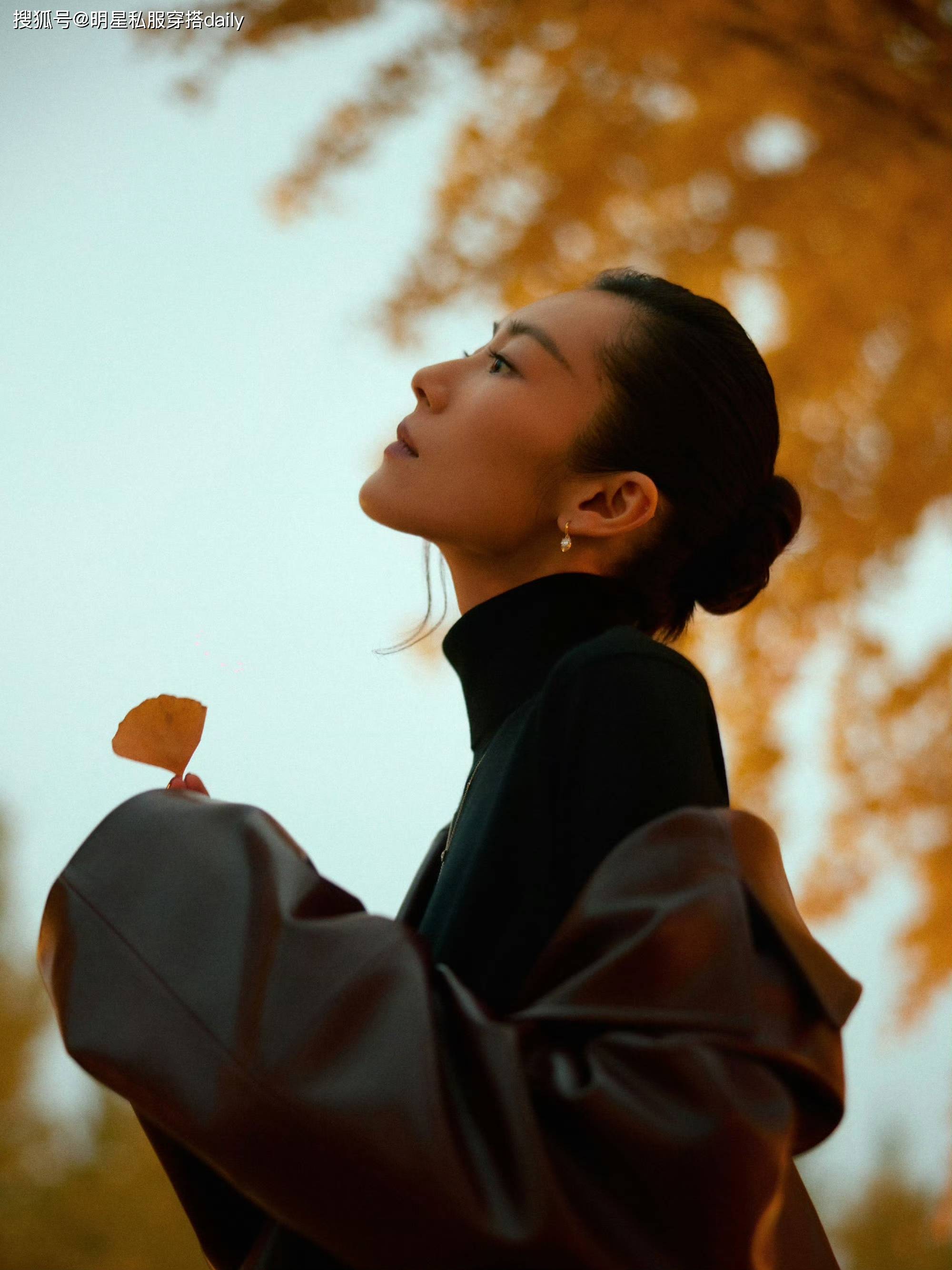 若你不知道情侣装如何搭配,不妨尝试像刘雯井柏然选择同色系皮风衣,搭配高领衫,会更显默契感,特别显气质!