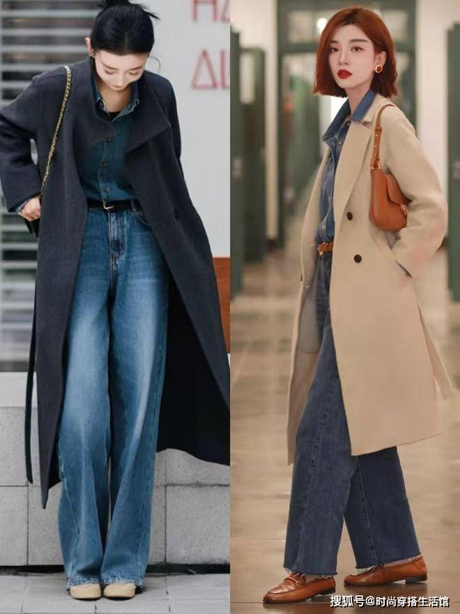 长外套的覆盖面积很大,若是搭配长款下装做穿搭的话,很容易显得沉闷,分分钟沦为路人。要想避免枯燥、呆板,建议你多尝试打造出一定的“露肤感”。腿部线条纤细的姐妹们,大可尝试用能露出一截小腿的裙装或九分裤搭配大衣,打造出露腿(露脚踝)的效果,看起来更加时髦有看点。