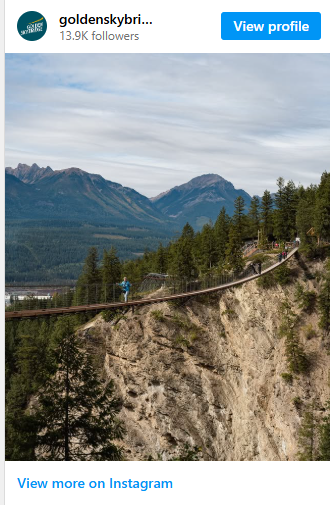 从视频里看,从Golden 到 Revelstoke 一路上都是白雪皑皑,银装素裹的冰雪世界, 松枝上挂满白雪,大地铺上厚厚雪毯。冬天的雪景的确是如诗如画,美得让人陶醉。 随着火车的行驶,仿佛是一幅纯白的画卷在眼前展开。BC省的这两个旅游胜地都因其美丽的景色而备受赞誉,今年早些时候,孤独星球将Golden 评为加拿大最美丽的地方之一。这里有加拿大最高的吊桥—金色天桥(Golden Skybridge) 拥有两座横跨在幽深峡谷中,比Capilano 吊桥还要更长更惊险的吊桥,真的是需要有些胆量才能走完这两座吊桥。