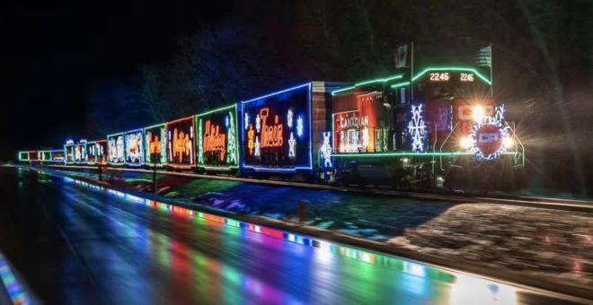 CPKC假日列车(CPKC Holiday Train)是加拿大太平洋堪萨斯城铁路(CPKC)每年在11月和12月举办的社区慈善活动,列车装载着节日灯光,会巡游加拿大和美国近200个城市,停靠时会举行免费的节日音乐会,并鼓励民众捐赠食物或现金给当地的食物银行,是一个充满爱心和欢乐的冬季传统。
