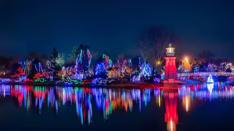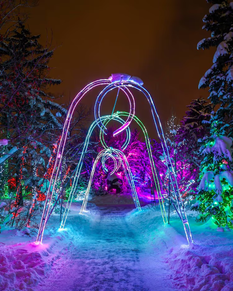 百万加元打造的灯光装置美轮美奂,还有迷你小火车乘坐、篝火旁热巧克力品鉴等活动,适合全家一起度过温馨时光。