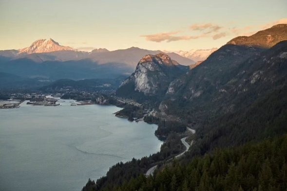从温哥华出发走海天公路(Sea-to-Sky Highway),1小时直达。沿途加里波第山、香农瀑布疯狂刷存在感——风景美到像滤镜开满。到斯阔米什后,你一定会被地标巨岩震住:斯塔沃姆斯山(The Chief)