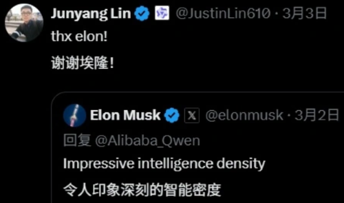 外界注意到,此前林俊旸刚刚于3月2日晚间带领团队对外发布了4款Qwen3.5小尺寸开源模型,在业界引起广泛关注,包括马斯克也留言称“令人印象深刻的智能密度”。林俊旸转发了马斯克的这则评论并表达感谢。