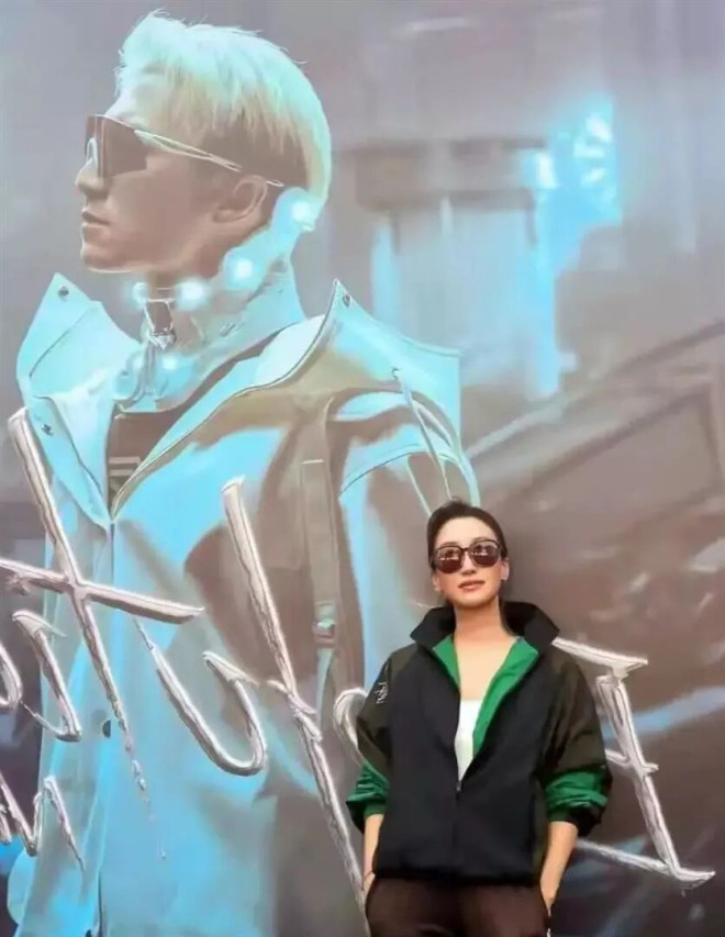 她在店里逛了一大圈,对着谢霆锋的唱片和周边挨个细看,虽然啥也没买,但眼里的兴奋藏都藏不住。 在哥哥的海报前拍照,随便摆个姿势又酷又飒,直接被店里当成了活招牌。