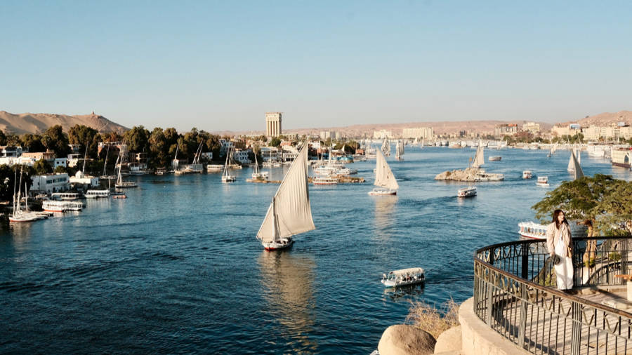 “呜——”,停泊于大坝下游段的河轮,在接应到从阿布辛贝归来的最后一个游客后,起锚离岸,向着卢克索方向顺流而下。