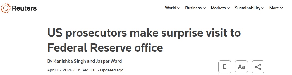 路透社周三(4月15日)最新报道,美国检察官让妮·皮罗(Jeanine Pirro)办公室的检察官于周二(14日)对美联储总部翻新工程的施工现场进行了突袭访问,此举正值川普政府继续对美联储施加压力之际。